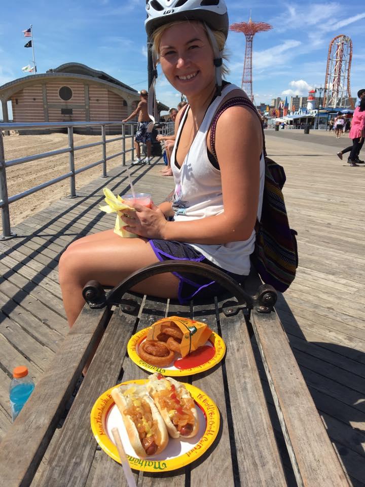 Auf Coney Island machen wir Halt für Nathan's Famous Hot Dogs, bevor wir zum Ocean Drive nach Bay Ridge fahren, wo wir die NYC-Fähre nach Red Hook, Brooklyn, nehmen, um in unserer Heimatstadt zu grillen.